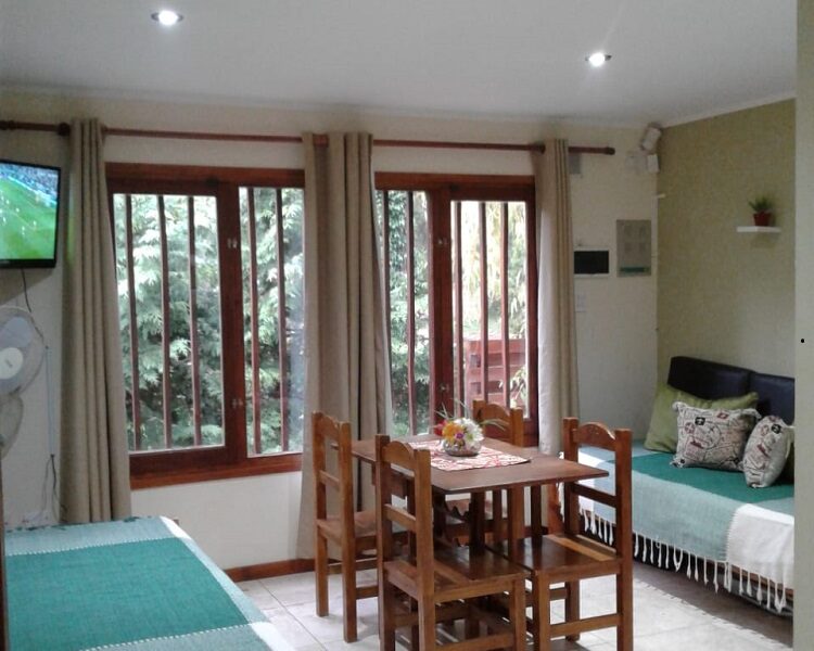 En un predio de 450 mts² con jardín, iluminación, espacio para estacionar (descubierto). Posee 2 unidades CEIBO y JACARANDA de 2 ambientes cada una, con capacidad de 2 a 4 personas máximo.